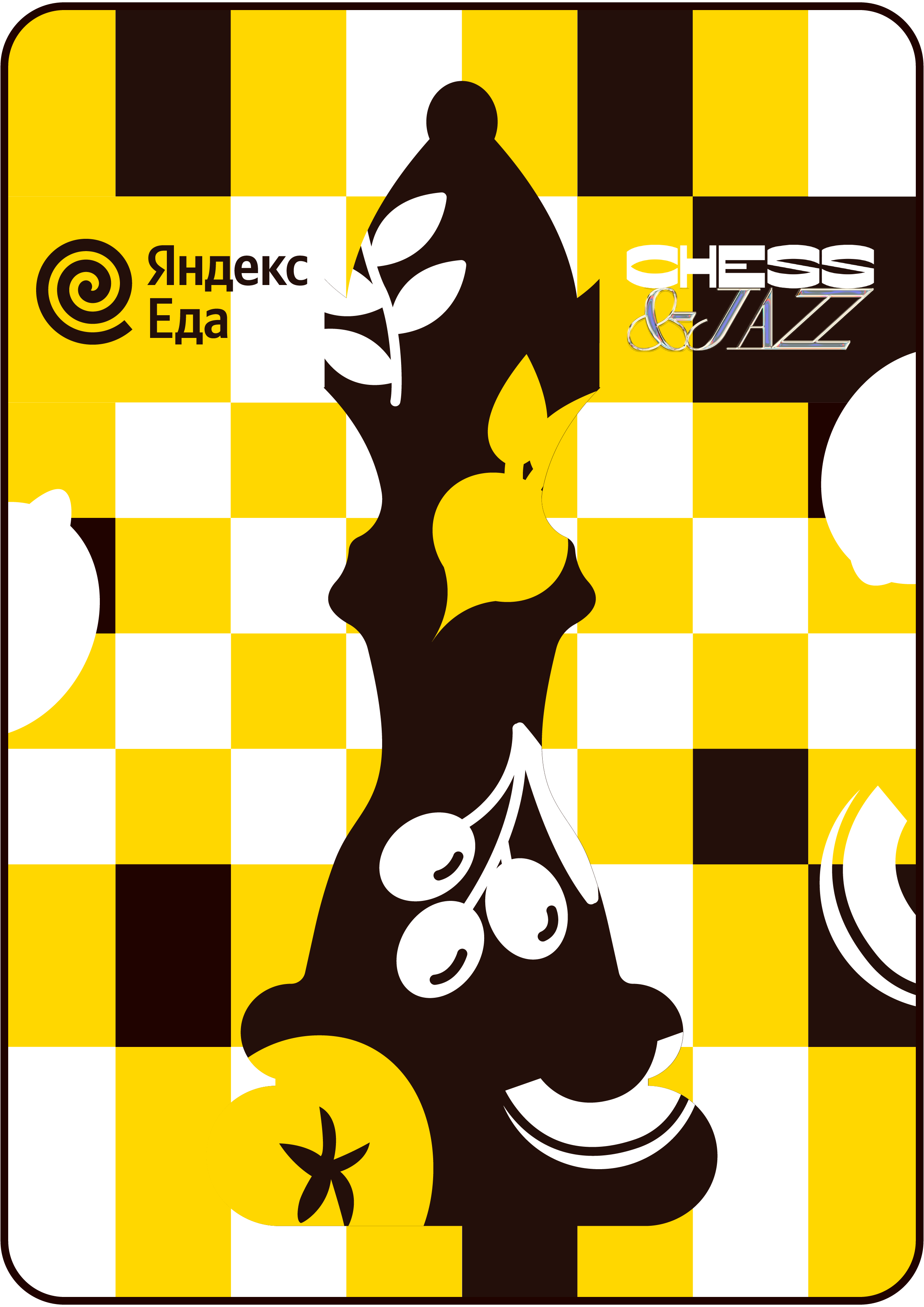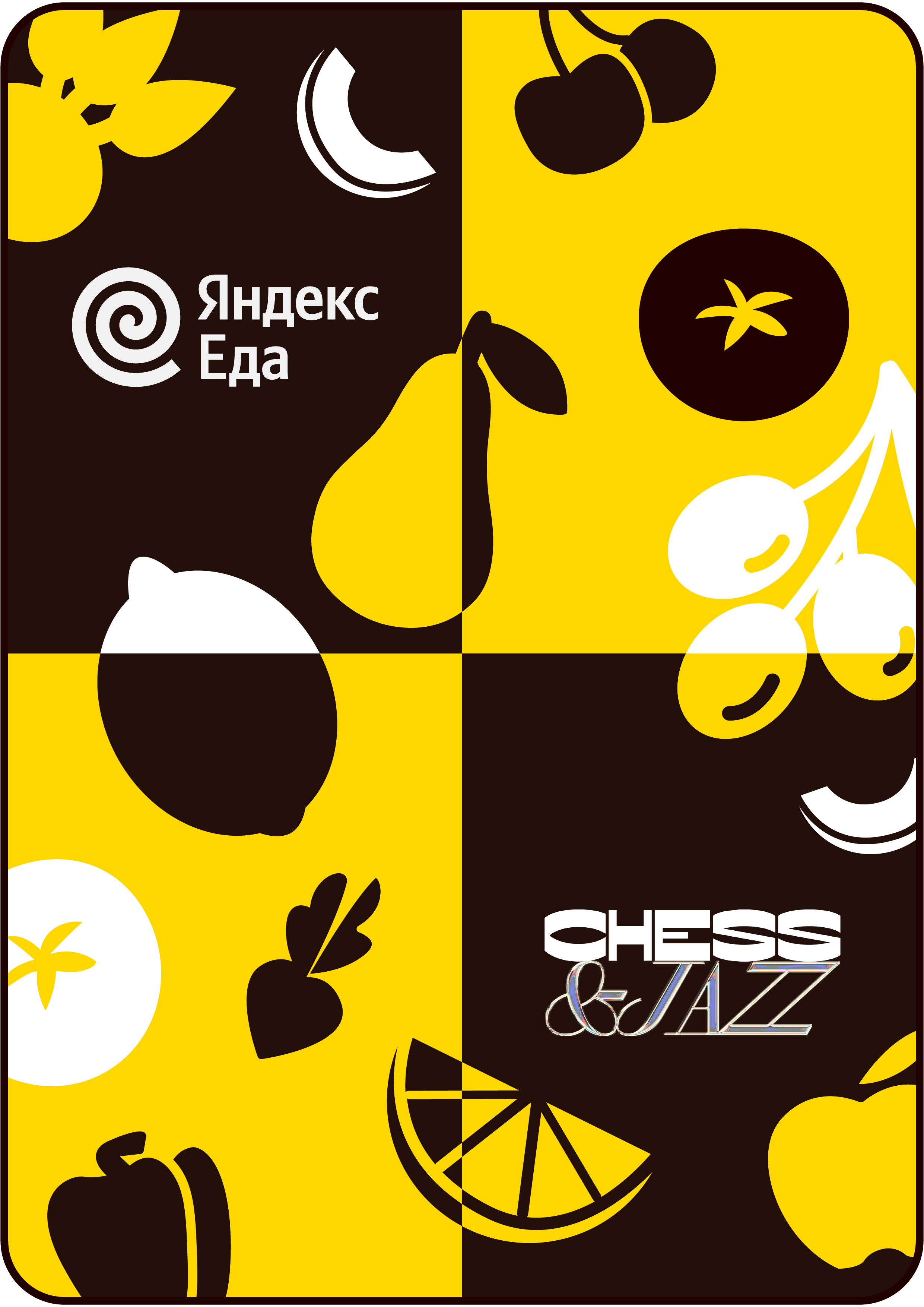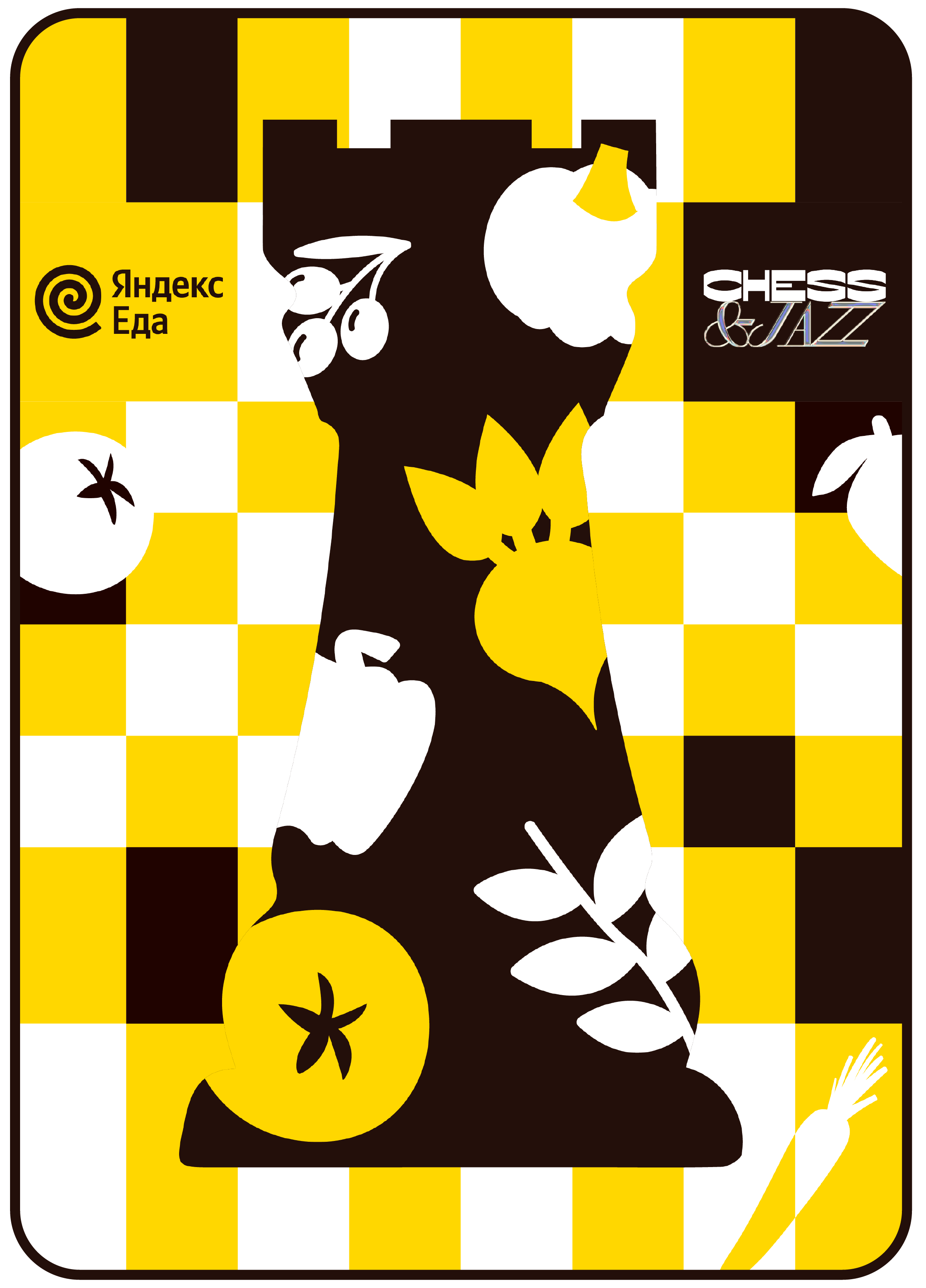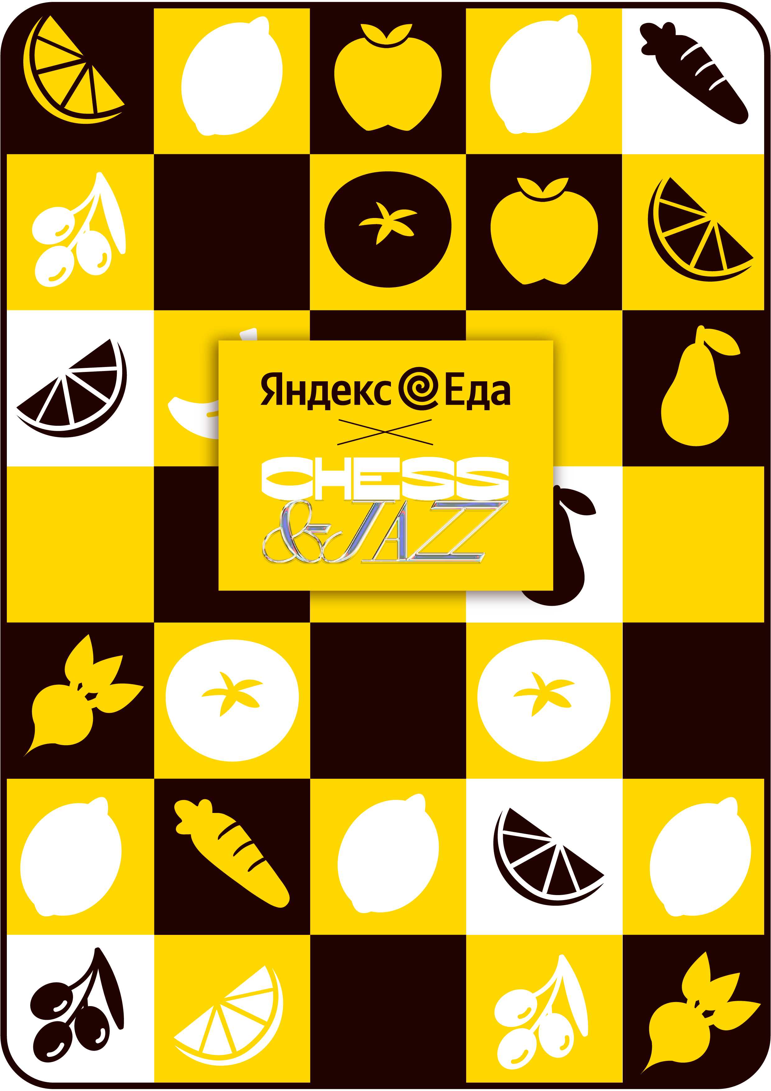 The color scheme of yellow, black, and white has effectively used to create a striking and memorable visual, balancing freshness of vegetabels with the classic elegance of chess. The final visual maintained clarity and visual appeal, making the key elements of the design immediately recognizable and engaging.